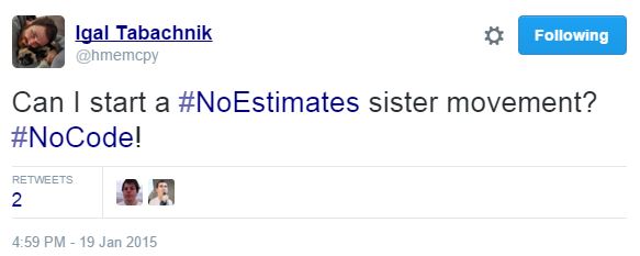 - «#NoEstimates is not «refuse to do estimates», it’s «let’s all be open to noticing problems, discussing ideas, and seeking better«(ссылка)