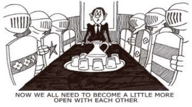 Сидит человек. Скрестив руки. Ему «нечего сказать». Но после — возле кофе машине вам всем объяснят «почему все плохо — кто виноват — что делать». Почему не сказал? Зачем говорить — сто раз уже говорили, все и так давно всё знают.
