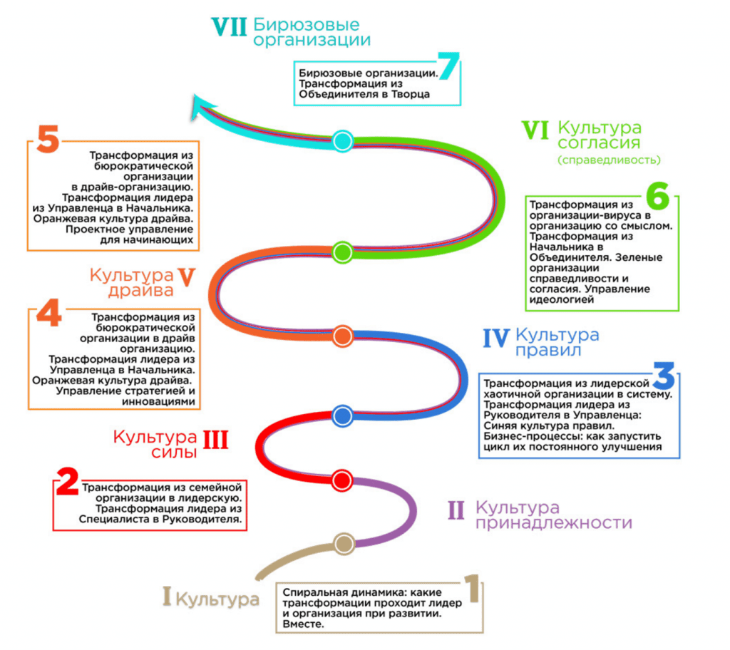 Если прочитать только «Организации будущего» появляется ощущение, что все организации в процессе эволюции должны пройти стадии развития от красных к бирюзовым и закрепится в последнем. Если прочитать «Жизненный цикл организаций», то становится понятно, что движение может быть цикличным, и — не всегда линейным. И не всегда следующий шаг должен быть строго вверх.