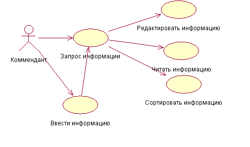 по ней коммендант может редактировать, читать,сортировать информацию, если она есть, если же ее нет, то коммендант сначало вводит информацию