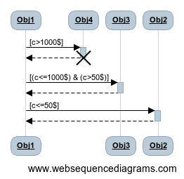 а текст изменится на: Если же сумма превышает $50, но не превышает $1000, то управление передается объекту 3,