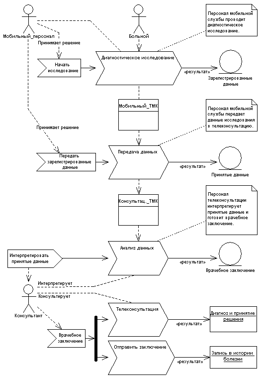 ** Что касается первой диаграммы - ... главное тут - получить медицинское амбулаторное обслуживание, частью которого должен быть телемедицинский сервис. ... сразу обозначить границу - Получить телемедицинское амбулаторное обслуживание. ... Где происходит данный процесс? **